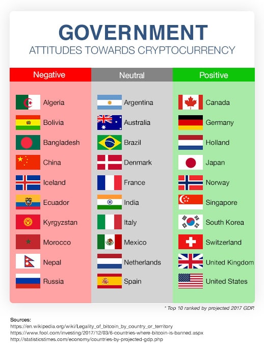 Bolivia, Ecuador, Kyrgysztan and Bangladesh all placed a ban on Bitcoin in 2014, one that makes it illegal for individuals and businesses to own or trade in the cryptocurrency. Somewhat unbeknownst to its citizens, Nepal followed suit, as did Morocco with the most recent official ban in November 2017. Aside from occurring in the midst of Bitcoin’s year-end rise, Morocco’s ban also stands out by being passed just days after MTDS, a domestic provider of digital services, announced support for digital currencies.